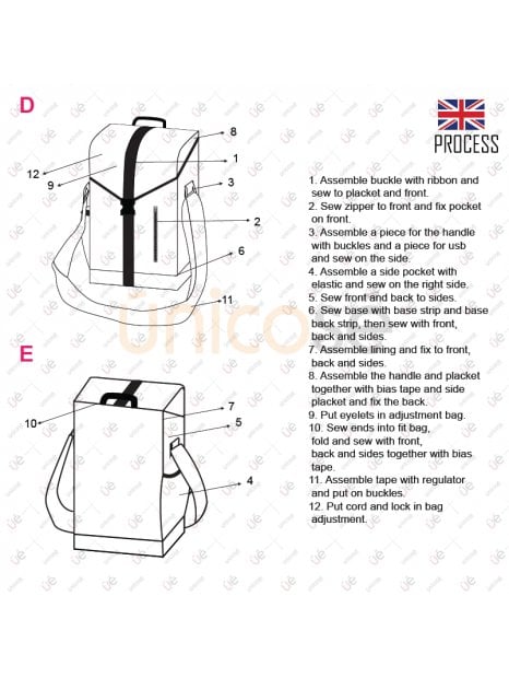 ELÁSTICO (1cm de ancho)en bolsillo lateral- CINTA BIES (2cm de ancho) en tapeta y parte superior- CREMALLERA CIERRE en bolsillo exterior – REGULADOR (1). – HEBILLAS DE AGARRE(2)- HEBILLAS DE PLÁSTICO (1)- CINTA PARA MOCHILA (4cm de ancho)- CORDÓN PARA AJUSTE- TANCA/TRABA DE AJUSTE (1)- OJETILLOS (2) L. 24 aprox.