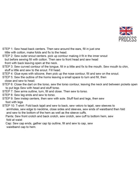 – COLOR D (Gorro, lengua y nariz): 24cms. de tela plana (Pañolenci, Velour).