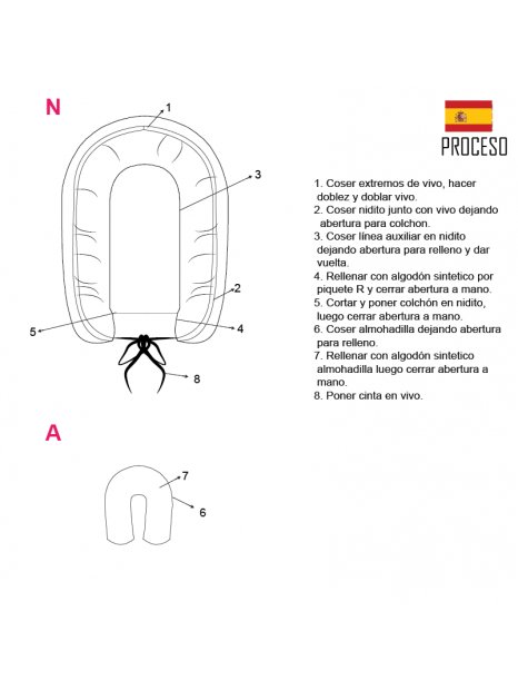 – ESPUMA (3cm de espesor): Relleno colchón – CINTA DE RASO – ALGODÓN SINTÉTICO PARA RELLENAR.