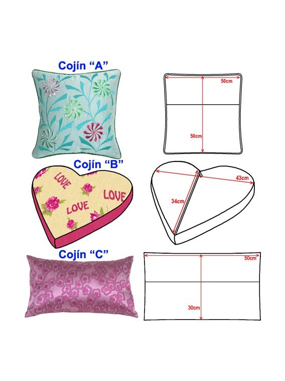 Set cojines de 50 x 50 cms- 50 x 30cms y 43 x 34cms